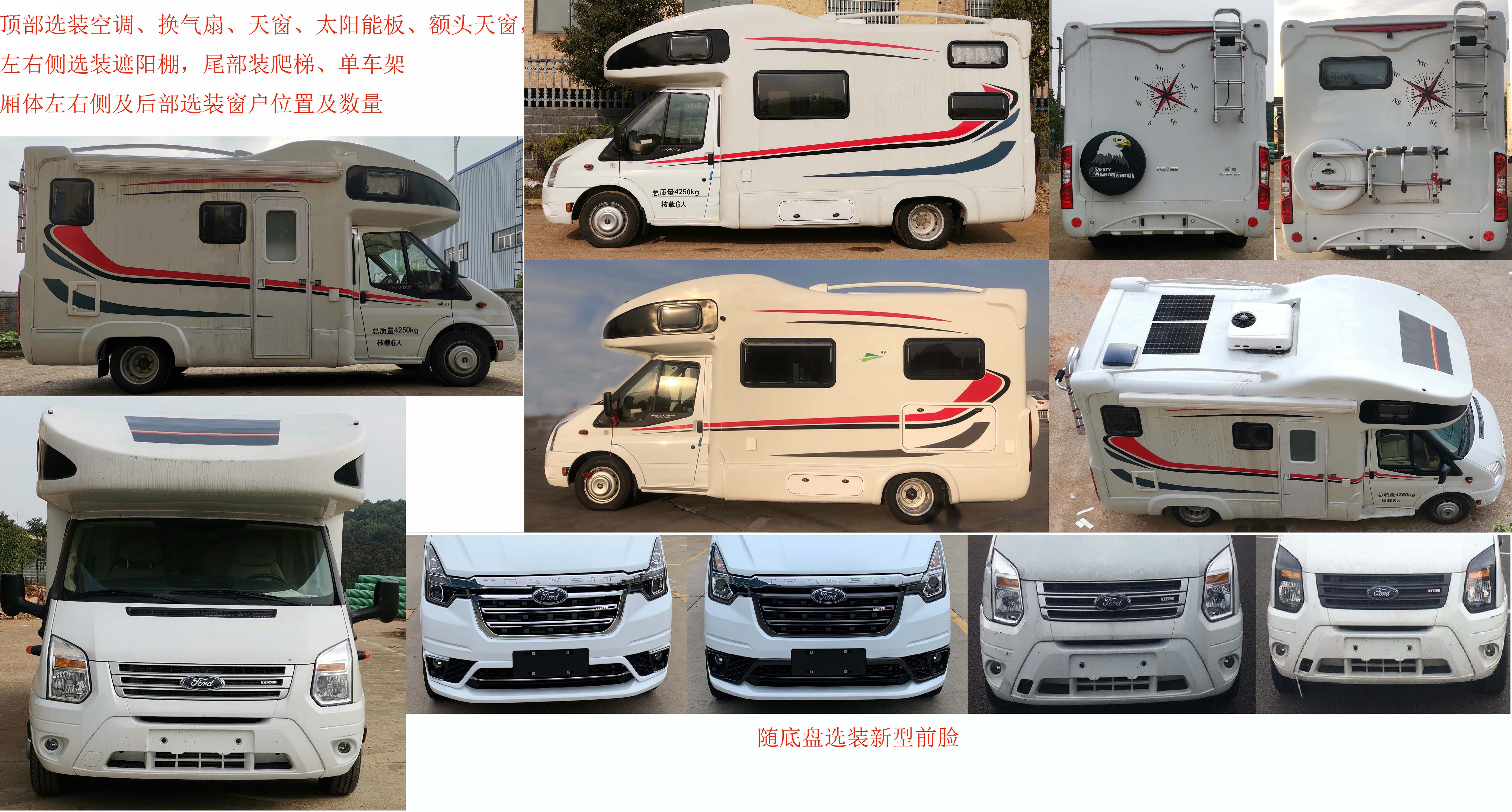 1、车厢内配置有沙发、冰箱、卫浴、卫生间、床具和炊具。2、车顶选装空调、换气扇、天窗、太阳能板、额头天窗,左右侧选装遮阳棚;尾部选装爬梯,随底盘选装驾驶室外观,候补选装窗户数量及位置3、该车以裙边结构代替侧防护、后防护,侧防护下边缘离地高度260mm,后防护下边缘离地高度360mm。4、随原车选装前大灯,选装电动外后视镜。5、ABS型号:6C11 2M110 A*或CC11 2C405 A*,生产厂家:博世汽车部件(苏州)有限公司。发动机最大净功率101kw。 |