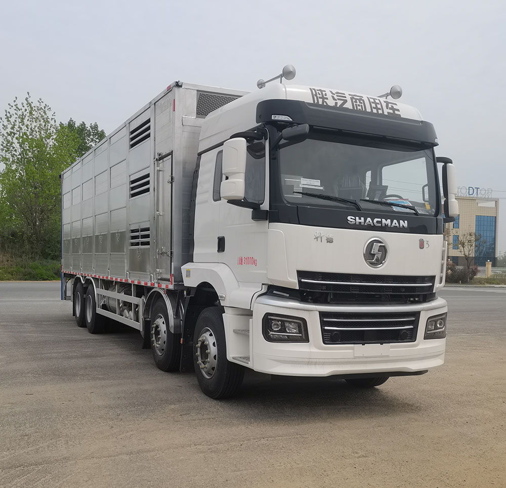 畜禽运输车又被叫做运猪车、拉猪车、鸡苗运输车,是一种主要用来运输活禽类的专用车型,有仓栅式和厢式两种结构形式,前一种结构比较简单,适合短途运输,而后一种配置上比较高端,适合活禽的长途运输,能够最大程度的保证活禽成活率,提高运输效率,那接下来就给大家介绍一款优质的畜禽车,即多士星牌陕汽轩德翼3前四后八国六铝合金畜禽运输车畜禽运输车,这款畜禽运输车有着怎样的配置呢?
