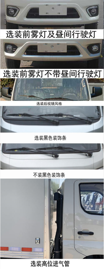 随底盘选装驾驶室前雾灯及昼间行驶灯,导流罩,黑色装饰条,后视镜风格,高位进气管;货厢顶部封闭不可开启;运输具有独立容器包装的易燃气体和非易燃无毒气体,危险货物类项号为2.1和2.2;货厢外蒙皮选装瓦楞板,彩涂板;货厢侧面选装无开门,单开门,双开门;选装通风格栅形式和位置;选装货厢后部风格;ABS型号:YF9,生产企业:武汉元丰汽车电控系统有限公司;加装限速装置,最高车速80km/h;装用子午线轮胎,加装具有卫星定位功能的行驶记录仪,排气管前置,采用前轮盘式制动器,安装辅助制动装置.发动机DAM15KL对应油耗值:8.6L/100km |
