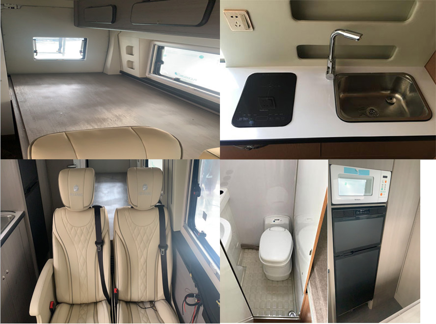 1.随底盘选装手动踏步,电动侧踏步、前格栅、LED前组合灯、LED后尾灯、日间行车灯、轮圈、轮饰盖、后尾标、前雾灯、后摄像头、后门开启限制;2.ABS型号:ABS9,ESP9.ABS生产企业:博世汽车部件(苏州)有限公司,博世汽车部件(苏州)有限公司;3.配备桌椅,厨具,睡具,卫生设施等旅居生活设施;4.顶部选装太阳能电池板,卫星天线;选装排风扇时高度为2800mm,选装行李架时高度为2850mm,选装不同顶置空调时高度分别为2900,2950,3050,3100;5.车辆后部选装自行车架,爬梯;6.车辆右侧选装侧遮阳棚,选装侧遮阳棚时整车宽度为2160mm;车辆左侧选装外接充电口,加水口。该车可选装车载ETC装置。 |