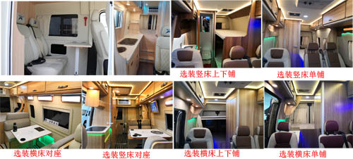 车内设有桌椅,睡具,炊具,卫生设施及必要的照明和空气调节等设施。选装不装车顶设备。车顶选装换气扇,空调,行李架,卫星天线,太阳能板;选装不带后爬梯;选装带自行车架;选装遮阳蓬;选装内部不同布置型式、随原车选装一体式后踏步(选装一体式后踏步整车长度5785mm,后悬1070mm) ,选装后踏步、侧踏步、牌照装饰板、前格栅、尾标、轮圈、轮饰盖、外摄像头。ABS生产企业:博世汽车部件(苏州)有限公司,博世汽车部件(苏州)有限公司,ABS型号:ABS 9,ESP9.发动机最大净功率:100.5kW.该车型可选装ETC车载装置; |