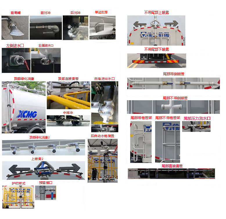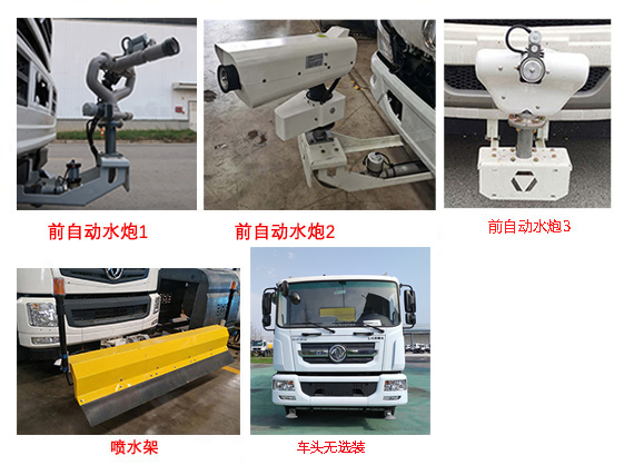 该车主要专用装置为罐体、水路及清洗装置,用于城镇环境清洗清洁;仅选用4500mm轴距;罐体有效容积为9.8立方米,罐体尺寸(长轴×短轴×长度)(mm):2440×1470×3795,运输介质为水,密度为1000千克/立方米.1、车头无选装时,长度8223mm,整备质量8300kg,接近角13°;2、选装前自动水炮时,前伸600mm,长度8823mm,整备质量8300kg,接近角11°;3、选装前喷水架,前伸1017mm,长度9240kg,整备质量8470kg,接近角11°;随底盘选装驾驶室;选装鸭嘴、对冲、单边支撑、进水口、顶部绿化浇灌、直喷雾管、自吸进出水口、中排冲、后自动水炮装置、护栏样式、预留接口、不带尾部上下喷雾、侧喷管、卷管架、尾部压力放水口,此类选装引起的重量尺寸变化忽略不计.侧防护装置材质为Q235B,连接方式为螺栓连接;后防护装置材质为Q355B,连接方式为螺栓连接,离地高度440mm,截面尺寸为180×60mm;ABS系统生产厂家,型号 :焦作博瑞克控制技术有限公司,J ABS;襄阳东风隆诚机械有限责任公司,ABS/ASR-24V-4S/4M;选装限速装置时最高车速为89km/h. |