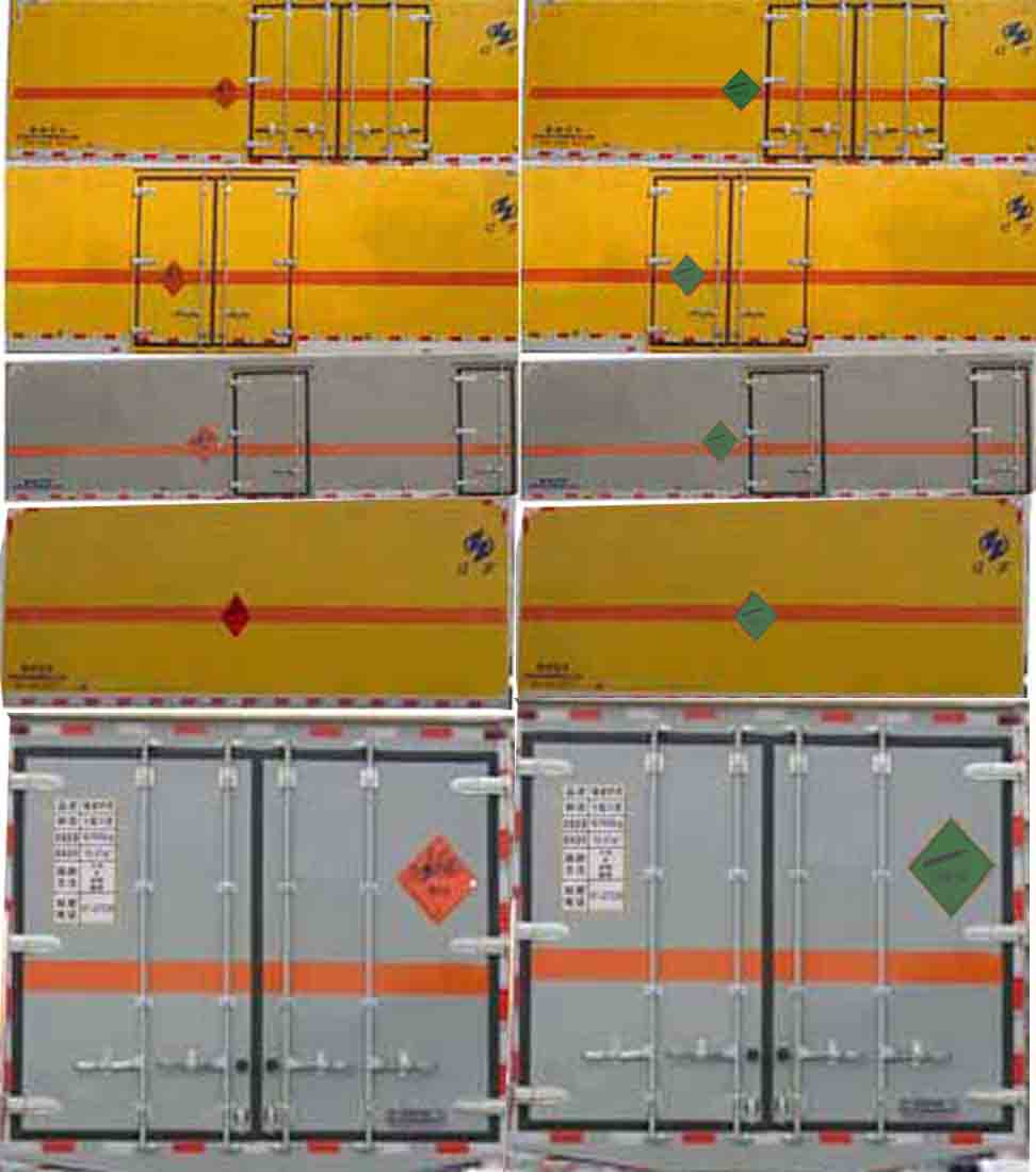 厢体顶部密封,不可开启,厢体两侧选装不同形式侧开门及开门位置或不带侧门.选装不同形式后门拉杆,选装厢体外蒙皮。该车为危险货物运输车.运输具有独立容器包装《GB12268-2012》要求的易燃气体或不燃气体;运输介质类别和项别号:2.1;2.2 .侧防护与车辆采用螺栓连接、后防护与车辆采用焊接+螺栓连接,后防护断面尺寸(mm):120×60, 离地高度:450 mm,材料均为:Q235.该车安装ABS,限速装置,限速80km/h,前轮盘式制动器,排气管前置,带卫星定位功能的行驶记录仪,仅采用安装子午线轮胎,转向轮安装轮胎爆胎应急防护装置底盘。ABS系统控制器型号/生产企业:ABS-E/威伯科汽车控制系统(中国)有限公司,ABSVI E/广州瑞立科密汽车电子股份有限公司.仅采用F3.8NS6B156型发动机油耗值均为:20.81 L/100km. |
