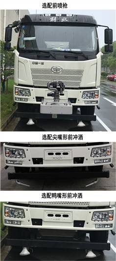 备注 | 1.该车罐体有效容积:13.4立方米,罐体外形尺寸(mm)(长轴×短轴×直线段):2304×1380×5600(直线段),罐体总长5690mm;装运介质:水;密度:1000kg/m3;2.该车具有三种配置:A仅配置前冲洒,此时整车长度为9900mm,相应接近角为14°;B配置前置喷枪,此时整车具有前伸640mm,相应整车长度为10540mm,相应接近角为14°;C配置前喷架,此时整车具有前伸1000mm,相应整车长度为10900mm,相应接近角为10°;3.该车前冲洒具有鸭嘴形、尖嘴形两种选配;该车并可选装小卷盘,选装后上喷雾,选装后下喷雾,选配罐顶侧喷,选装后部侧喷;4.该车随底盘安装ABS,ABS系统生产厂家:长春瑞立科密汽车电子有限公司,型号:CM4XL;5.该车随底盘选装前围和灯具,选装宽体保险杠,脚踏板;6.该车型可选装ETC车载装置;7.侧防材料:铝合金,连接方式:螺栓连接;后防材料:Q235-B,螺栓连接,后防截面尺寸:160×50(mm),最大离地高度:480mm;该车主要由液罐,高压水泵,管路冲洗系统等结构组成,主要用于清洗路面功能. |