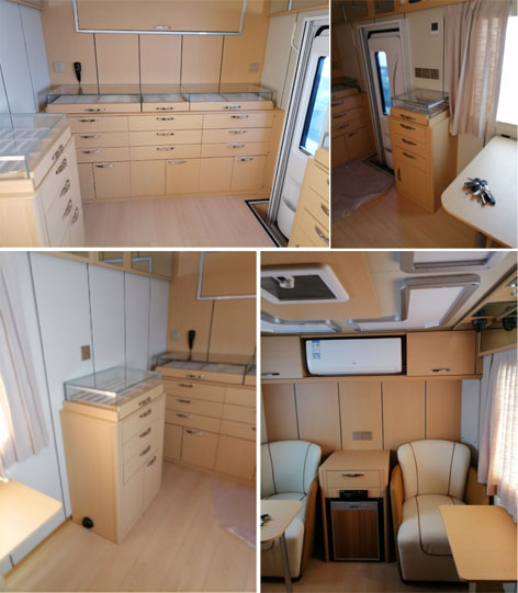 程力重工牌上汽大通国六蓝牌流动服务车在外观时尚霸气造型圆润流畅,可有效降低风阻系数,整车外形尺寸为5970×2200,2360×2990(mm),厢体采用玻璃钢复合车身结构及阻燃保温材料,做工精细;房厢内部配置齐全。