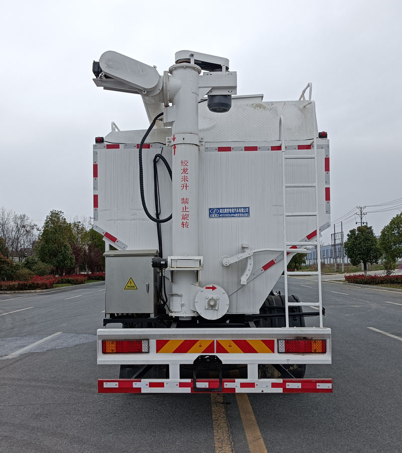 该车专用装置由饲料仓、输送系统、液压系统(或电动系统)等机构组成,主要用于从饲料厂向畜牧场、养禽场及饲料加工用户运输散装饲料成品或饲料生产原粮.运输介质:膨化及颗料饲料,介质密度:500千克/立方米,罐体有效容积:28.8立方米,罐体外形尺寸(长×宽×高mm):6600×2545×2640.整车长/前悬/轴距/后悬(mm)对应关系为:9400/1400/1995+3500/2505.侧、后防护材料Q235B,侧防护与车架螺栓连接,后防护焊接连接,后部防护装置断面尺寸(宽×高)50×130(mm),后部防护离地高度:490mm.随底盘选装驾驶室.该车安装具有卫星定位功能的行驶记录仪.选装ETC车载装置.ABS型号:ABS 8,ABS-E 4S/4M;ABS生产企业:东科克诺尔商用车制动系统(十堰)有限公司,威伯科汽车控制系统(中国)有限公司.发动机DDi75E300-60;DDi75E350-60;DDi75E260-60;D6.7NS6B260对应油耗值30.6L/100km;选装限速装置;限速装置限速(km/h):89.选装工具箱,液压油管,后部外观样式. |