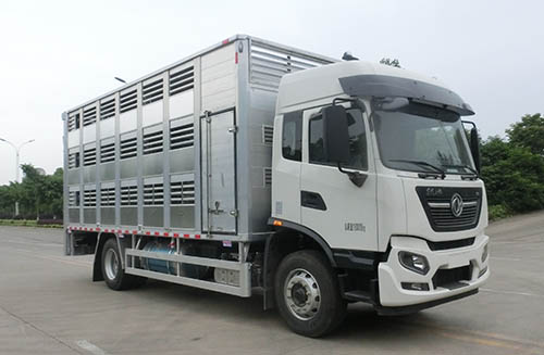 畜禽运输车又被叫做运猪车、拉猪车、鸡苗运输车,是一种主要用来运输活禽类的专用车型,有仓栅式和厢式两种结构形式,前一种结构比较简单,适合短途运输,而后一种配置上比较高端,适合活禽的长途运输,能够最大程度的保证活禽成活率,提高运输效率,那接下来就给大家介绍一款优质的畜禽车,即虹宇牌东风天锦单桥国六铝合金畜禽运输车畜禽运输车,这款畜禽运输车有着怎样的配置呢?