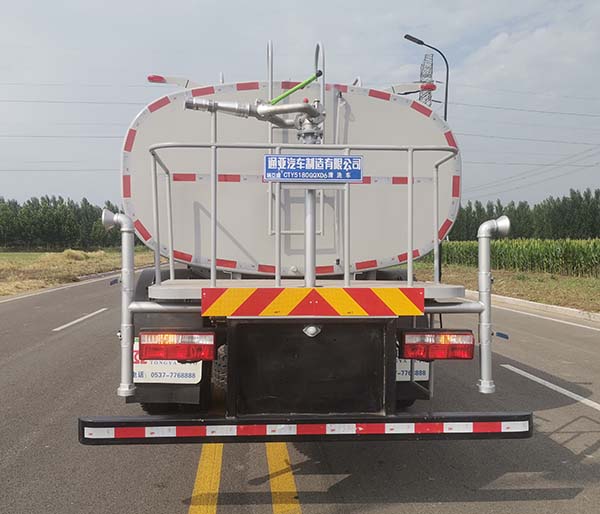 整车外形尺寸为8160×2500×2900(mm),容积大,额定载质量达到10970,10905(Kg),有效保证运水量,罐体后部安装了液压卷盘、水位计、洗管装置等配置,另外,还有一根长达60米的高压管,配合作业,胜任各种工况。