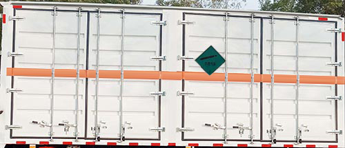 厢体顶部封闭,不可开启.该车适用于运输危险物品为危化品运输车.EBS型号/厂家:EBS5/东科克诺尔商用车制动系统(十堰)有限公司。该车装B6.2NS6B245发动机对应的油耗申报值均为36.1L/100km;仅采用子午线轮胎,排气管前置,前轮盘式制动器,安装限速装置(限速80km/h).安装具有卫星定位的行驶记录仪,转向轮装备轮胎爆胎应急防护装置,后轴采用空气悬架,选装直接供电式ETC车载装置;侧、后防护材质:Q235;防护连接方式:侧防护为螺栓连接,后防护为螺栓连接,后防护断面尺寸:60×160(mm);后防护离地高度420mm;该车主要用于运输独立容器包装的易燃气体,非易燃无毒气体.类项号为2.1,2.2;运输易燃气体时挂2.1类警示牌,运输非易燃无毒气体时挂2.2类警示牌。选装左侧、右侧、左右两侧双对开门结构;随底盘选装驾驶室前面罩.选装侧窗玻璃.驾驶室顶部中间三个装饰灯为选装件;前雾灯为选装件;驾驶室前脸扰流罩为选装件.选装导流罩. |