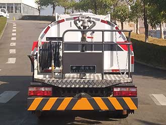 仅选用3365mm轴距;罐体外形长轴×短轴×长度(mm):1680×1100×3100,罐体有效容积:3.87立方米;介质名称为:水;介质密度:1000 千克/ 立方米;侧防护及后部防护装置的材料材质:Q235B;连接方式为螺栓连接;后部防护装置的断面尺寸(宽×高)mm:50×200;后部防护装置的离地高度430mm;可选装:1、后上喷雾装置;2、后下喷雾装置;3、左右侧浇花管; 4、选装后部作业指示灯。以上4种选装配置引起的重量及整车尺寸变化可以忽略不计。该车装备有罐体,水泵,管道系统等,用于清洗路面,对路面喷洒水降尘等作用。ABS型号/厂家:VIE ABS-Ⅱ/浙江万安科技股份有限公司。 |