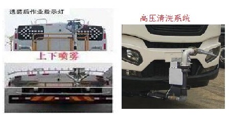 该车装有水罐,水路系统,清洗工作装置,作业平台,控制系统,用于清洗作业;罐体有效容积:10立方米;罐体尺寸(长×长轴×短轴)(mm)为:5000×2150×1400;4400×2300×1485;整车长/轴距/后悬分别为(mm):8950/5000/2550,8000/4500/2100;侧、后防护装置材料材质:Q235B,侧、后防护均用螺栓连接,后部防护装置断面尺寸(宽×高)80×150(mm),后部防护离地高度:500mm;该车可选装鸭嘴,对冲,高压清洗系统,后作业指示灯,上下喷雾,自吸,卷盘,选装挡泥板,选装箱门样式,随底盘选装排气管;ABS型号:ABS 8,生产厂家:东科克诺尔商用车制动系统(十堰)有限公司. |