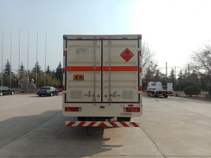 厢体顶部封闭,不可开启.ABS防抱死制动系统生产厂家/型号:浙江万安科技股份有限公司/VIE ABS-II.WP3NQ160E61发动机对应油耗值为15.7L/100Km,,装配限速装置,限制最高车速不得超过80km/h,安装具有卫星定位功能的行驶记录仪,只装配子午胎,只选用底盘前轮盘式制动,排气管前置。侧后防护材质:Q235;防护连接方式:侧防护为螺栓连接,后防护与车架纵梁螺栓连接。后防护断面尺寸:60×140(mm);后防护离地高度360mm.运输介质:易燃气体气瓶,类项号:2.1;选装非易燃无毒气体的气瓶,类项号:2.2. |