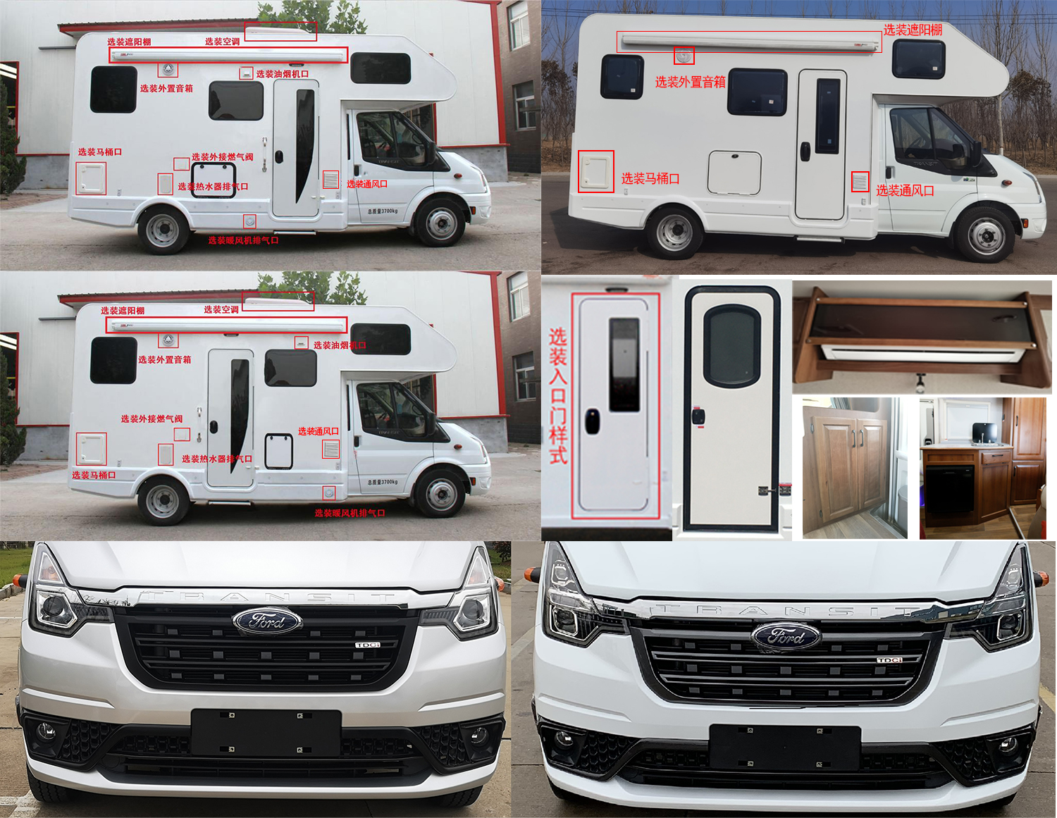 随原车增加新中网选装,选装普通款前大灯,选装外后视镜,选装外置音箱,油烟机出风口,燃气阀口,排气口,通风口,马桶口,选装入口门及窗户样式;选装车贴;选装卫生间布局及样式;ABS型号:6C11 2M110 A*,生产厂家:博世汽车部件(苏州)有限公司.发动机最大净功率101kw。配备电视,卫生设施,床铺,桌椅,给排水设施,炊具,空调等专用装置;不选装遮阳棚时宽度为2230mm;选装不同空调时高度为3085mm,3215mm,3250mm;选装右侧仓门位置。选装ETC设备;侧防护为裙边结构,后防护由后部裙边代替,最下端离地高480mm。 |