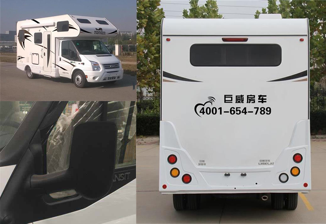 巨威牌江铃福特国六C型旅居车采用底盘型号为JX1045TJA26的江铃全顺牌底盘,排放标准为GB3847-2005,GB17691-2018国Ⅵ,轮胎规格为185/75R16LT,底盘搭载的发动机型号为DURATORQ4D226H,它具有动力足,耗能低,使用寿命长的优点。