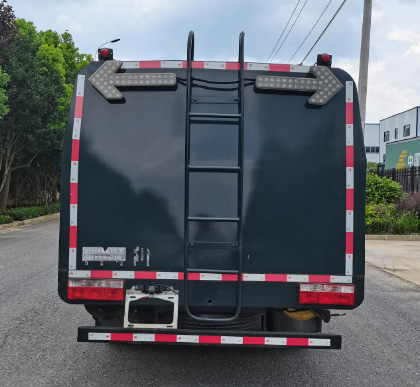整车外形尺寸为5387,5637,5995×2380,2450×2570,2670(mm),容积大,额定载质量达到2430,2365,2230,2165,1970,1905(Kg),有效保证运水量,罐体前面左侧安装了清洗刷、清洗机、洗管装置等配置,另外,还有一套手动的高压喷抢,配合作业,胜任各种工况。