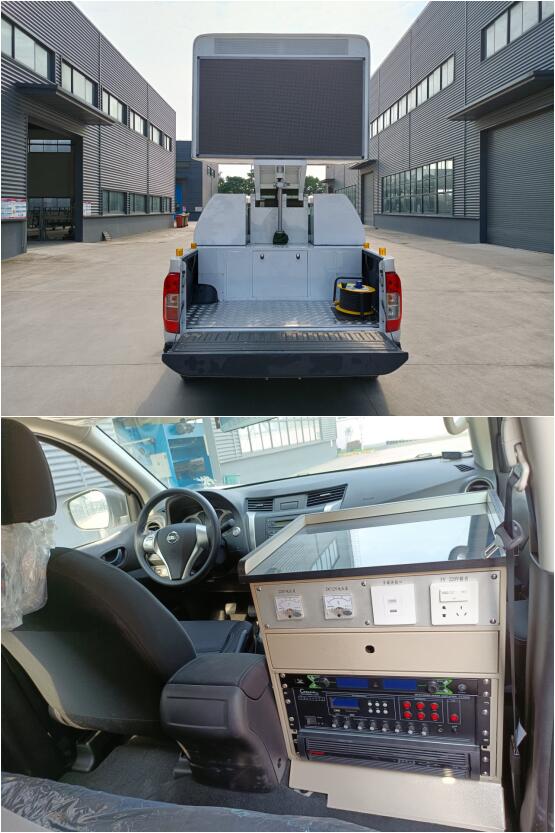 神探牌JYG5031XXCG6型宣传车整车的外形尺寸为5266×1850×1808(mm),车身颜色搭配LED显示屏的颜色再加上广告的炫彩,非常吸引人的眼球。箱体左右后三面都可选装LED显示屏,屏幕的清晰度随您挑选。该显示屏显示的色彩与播放源的色彩保持高度一致,显示出来的图像真实感极强。
