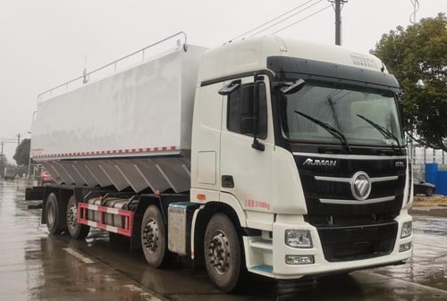 日途牌福田欧曼前四后八37.2方散装饲料运输车有着运输量大,上料速度快,卸料残余率低的特点,所以在饲料行业和养殖行业也占据着举足轻重的地位。