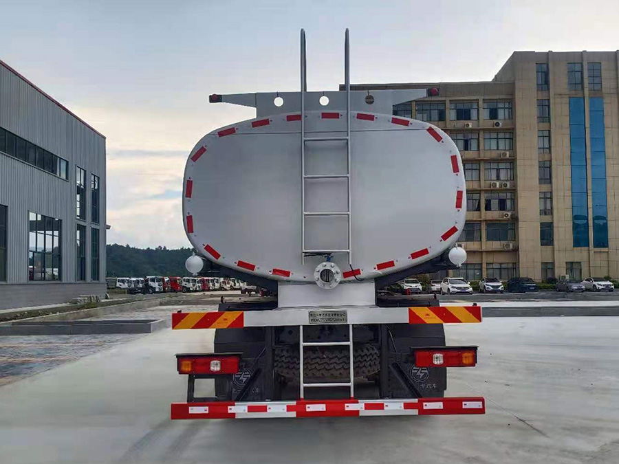 车身四周贴有反光标贴,充分保障行车安全,在罐体上还喷有易燃液体/气体的危险警示标志,警示过往车辆注意避让。