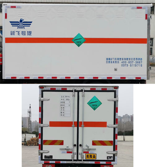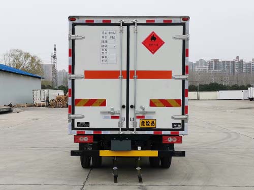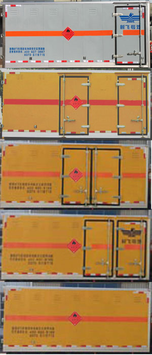 备注 | 该车为危险货物运输车;厢体顶部封闭,不可开启,厢体两侧均可选装1个或2个单侧门或对开侧门,侧门和后门可以选择单门杠或者双门杠,单侧门可选向左或右开启,也可不装侧门;用于运输具有独立容器(瓶)包装的易燃气体:液化石油气,压缩甲烷或甲烷含量高的压缩天然气,乙炔,乙烷,丁烷,丁烯,丙烯,二甲醚,压缩氢,类项号为2.1;运输具有独立容器(瓶)包装的非易燃无毒气体:二氧化碳,压缩氧(氮,空气,氦,氩,氖),类项号为2.2;该车仅使用排气管前置,前轮为盘式制动器底盘,转向轮安装轮胎爆胎应急防护装置,仅使用子午线轮胎;ABS系统控制器型号/生产企业:ABS-E/威伯科汽车控制系统(中国)有限公司,ABS-VI·E/广州瑞立科密汽车电子股份有限公司;该车安装具有卫星定位功能的行驶记录仪,该车装配有限速装置,限速80km/h;侧、后防护材料:Q235,连接方式:螺栓连接;后防护断面尺寸:100mm×50mm,后防护离地高度:460mm;仅使用发动机F2.8NS6B131,油耗值为10.85L/100km. |