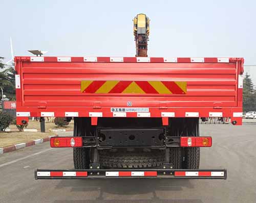 徐工牌陕汽德龙新M3000后双桥10吨直臂式随车吊在底盘上,选用轴距为5800+1350(mm)的底盘,底盘型号为NXG1250D5NCX,国五的排放标准,底盘上的轮胎规格为12R22.5 18PR/12R22.5 16PR,11.00R20 18PR/11.00R20 16PR,底盘搭载广西玉柴机器股份有限公司 广西玉柴机器股份有限公司提供的YC6JA240-50 YC6A270-50的发动机。