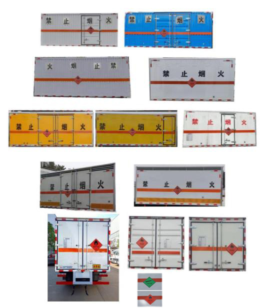 该车主要用于运输独立容器包装的易燃气体,非易燃无毒气体.类项号为2.1,2.2;运输易燃气体时挂2.1类警示牌,运输非易燃无毒气体时挂2.2类警示牌;厢体顶部封闭,不可开启;ABS生产厂家/型号:1.广州瑞立科密汽车电子股份有限公司/CM4XL-4S/4M;2.浙江万安科技股份有限公司/VIE ABS-II;仅选用发动机/油耗申报值(L/100km)对应关系为:WP2.3NQ130E61/11.41,CA4DB1-13E6/10.04.H20-120E60/10.09;侧后防护材料:Q235,侧防护连接方式:焊接连接,后防护连接方式:螺栓连接,后下部防护装置断面尺寸(mm):φ120,离地高度:455mm,液压尾板收起状态的水平长度为280mm,尾板质量350kg;选装不带液压尾板时,后防护材料:Q235,连接方式焊接,后部防护断面尺寸(mm):120×40,后部防护离地高度(mm):450,该车安装带有卫星定位功能的行驶记录仪;装备限速装置,限速80km/h;前轴装备盘式制动器;排气管前置.仅选用3300mm轴距,子午线轮胎.转向轮安装轮胎防爆应急防护装置.该车型可选装直接供电式ETC车载装置;随底盘选装驾驶室,随底盘选装左右附件及油箱安装位置;选装侧门后门样式及瓦楞工艺厢体. |