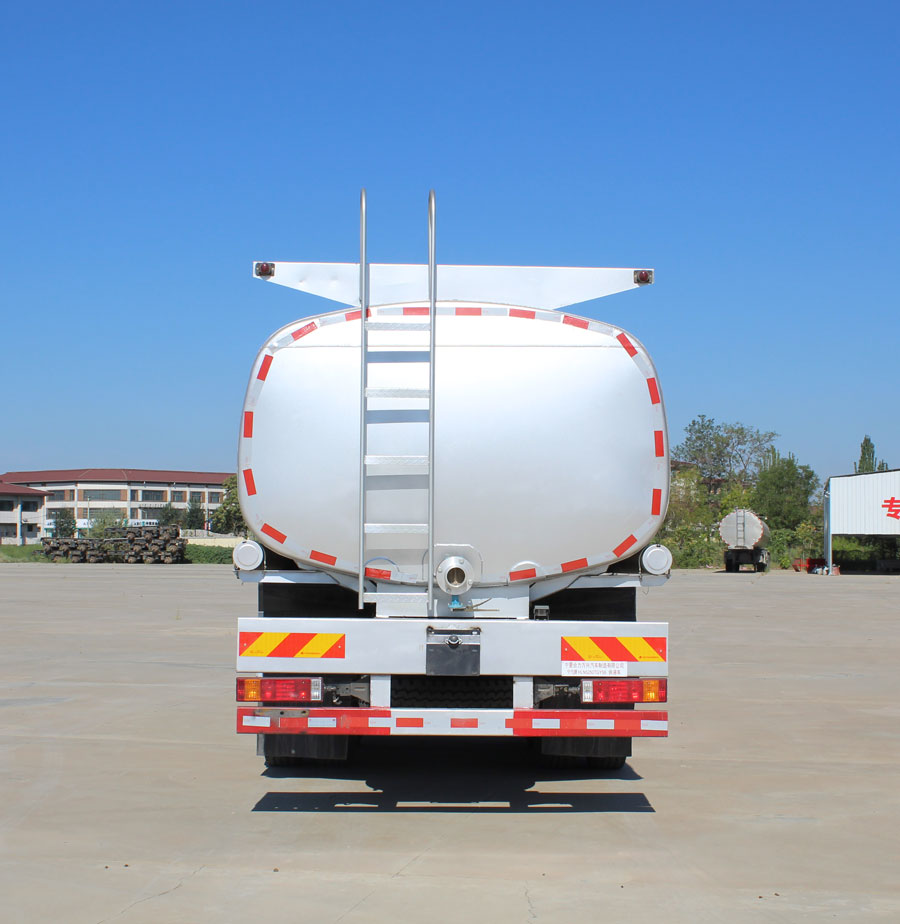 车身四周贴有反光标贴,充分保障行车安全,在罐体上还喷有易燃液体/气体的危险警示标志,警示过往车辆注意避让。