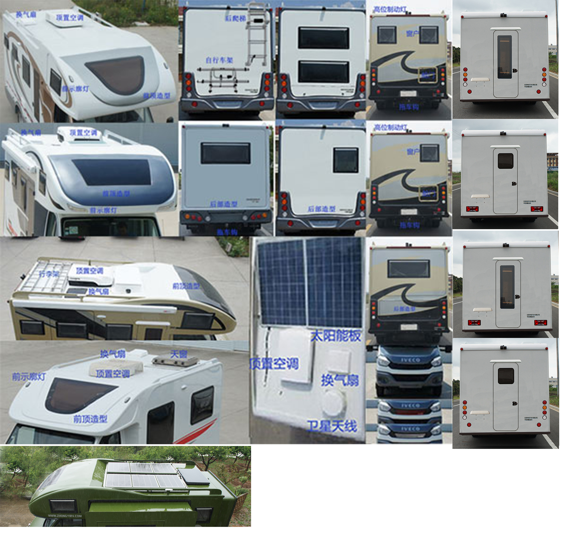 备注 | ABS型号:BOSCH ABS9、BOSCH ESP9;ABS生产企业:BOSCH公司;发动机净功率值:装F1AE8481D发动机时,发动机最大净功率93KW;装F1CE8481K发动机时,发动机最大净功率123kW;选装描述:选装不同形式的前顶造型及后部造型;选装前示廓灯,后部灯具的位置和样式;选装不同高度和宽度的厢体,厢体两侧及后部可选装驻车状态下使用的拓展厢;厢体两侧选装窗户,舱门,侧开门,上车踏步,遮阳棚;车顶选装顶置空调,卫星天线,换气窗,天窗,行李架,太阳能板;后部选装或不装窗户,选装后开门,选装牌照板位置和样式,选装高位制动灯,舱门,后爬梯,自行车架,拖车钩.随底盘不装前雾灯,选装红色格栅和镀铬格栅,轮罩,铝合金车轮.选装ETC车载装置;侧后防护情况:两侧和后下部裙边式围板防护替代侧后防护的功能,后防护下边缘离地高410mm;专用功能及装置:热水器,灶具,床,台,柜等,用于旅行宿营;其他说明:额定载客4人对应整备质量4218kg,额定载客5人对应整备质量4150kg,额定载客6人对应整备质量4082kg. |