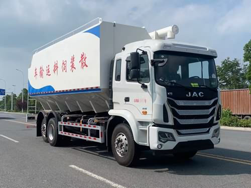 汇力威牌江淮格尔发K5后双桥27方散装饲料运输车有着运输量大,上料速度快,卸料残余率低的特点,所以在饲料行业和养殖行业也占据着举足轻重的地位。