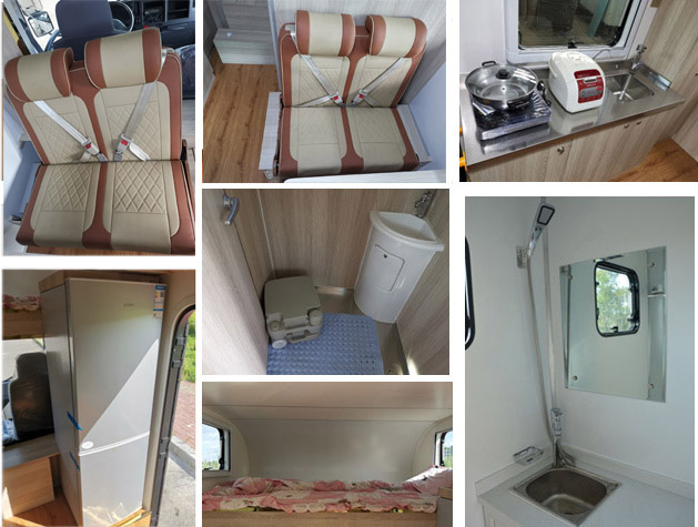 该车设有沙发、衣柜、燃气燃油炊具、电炊具、油烟机、发电机、厨具、卧具、卫生间洗浴设施等旅居用途的专用装置。车身主体宽2440mm,车宽2540mm时为选装遮阳蓬的宽度。普通车身主体高3200mm,选装低顶车身高度为3000mm,选装太阳能电池板高度为3300mm,选装顶置空调的高度为3480mm;两侧可选装外推窗,选装后部开窗,选装侧面车窗和客舱门不同数量及安装位置,选装不同额头配置、额头天窗,圆弧车顶 ,太阳能电池板。选装野外露营照明灯具,选装圆型挡泥板,选装车身彩条样式、玻璃钢材质车厢,侧后防护由车身结构代替,后部车身离地高度380mm.发动机最大净功率87KW,ABS及其控制器型号/生产企业为::APG3550500A/浙江亚太机电股份有限公司,CM4YL/广州瑞立科密汽车电子股份有限公司。该车可选装直接供电式ETC车载装置。 |