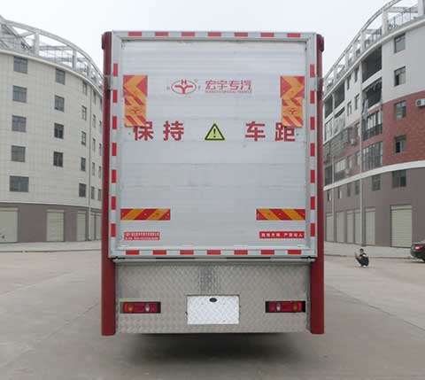此款车的底盘选用东风商用车有限公司生产的DFH5180XXYB4厢式运输车底盘,结构设计合理,车身轻便,驾驶室视野开阔,搭配东风康明斯发动机有限公司生产的B6.2NS6B210发动机,经济省油,动力足,承载力强。车胎在选材上也是别具匠心,防滑、耐磨、抗腐蚀性能都有全面的升级,保证了行车过程中的安全性。