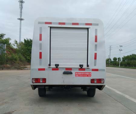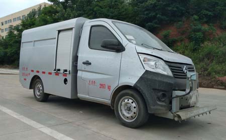 由河北长安汽车有限公司原厂生产的长安牌SC1027DAC5改装而成,2900(mm)轴距,175/70R14LT 8PR轮胎,前后轮距分别为:1360/1360(mm),整车排放标准满足国家规定的国五GB18352.5-2013国Ⅴ,搭载JL473Q发动机,功率达到72(Kw),能为上装工作提供充足的底盘动力。