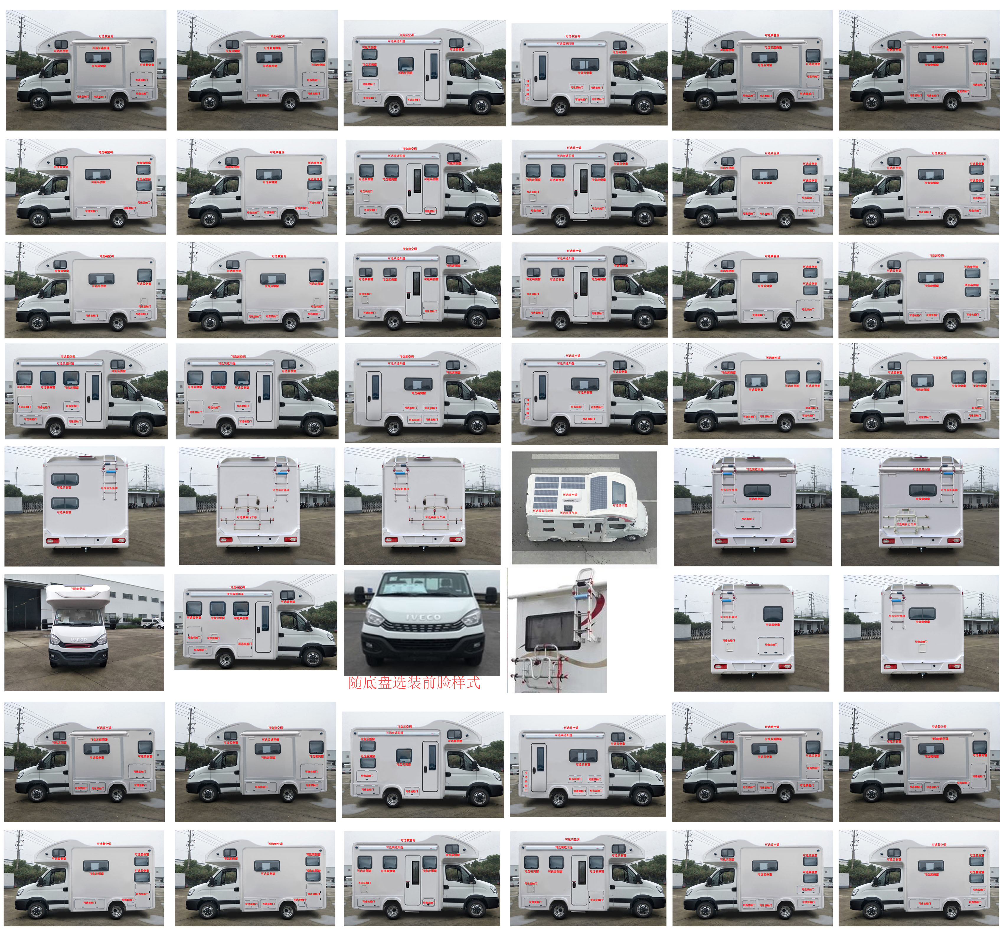 亿拖牌依维柯国六C型旅居车采用底盘型号为NJ1046EFC的依维柯牌底盘,排放标准为GB3847-2005,GB17691-2018国Ⅵ,轮胎规格为195/75R16LT 10PR,195/75R16C 107/105R,底盘搭载的发动机型号为F1AE8481D F1CE8481K,低能耗,高功率,满足现行排放标准。