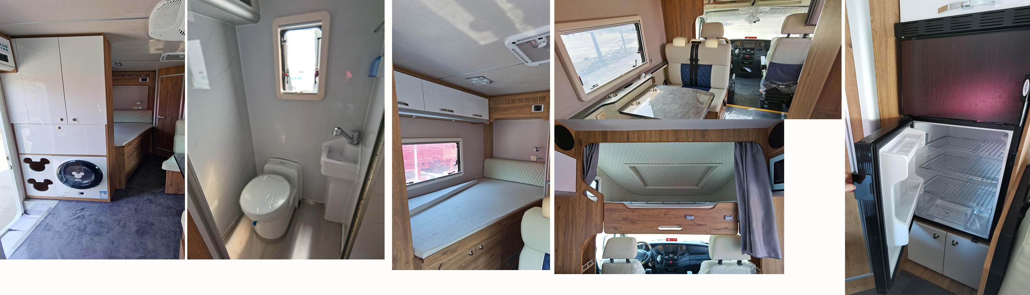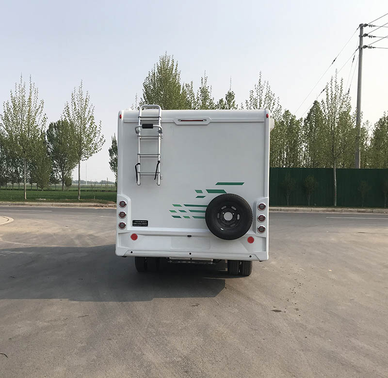 整车装配桌椅、卧具、厨具、卫生间等旅居专用装置;车顶选装换气扇;侧遮阳棚为选装件,选装后部自行车架,后部选装爬梯,顶部选装太阳能板,随原车选装前格栅样式,选装侧面及后部样式.侧防护为裙边结构,后防护与车身为一体,后防护离地高度500mm.ABS系统控制器型号:BOSCH ABS9、BOSCH ESP9, ABS系统控制器生产企业:BOSCH公司.选装直接供电式ETC.选装窗户位置,选装后部不带爬梯样式 |