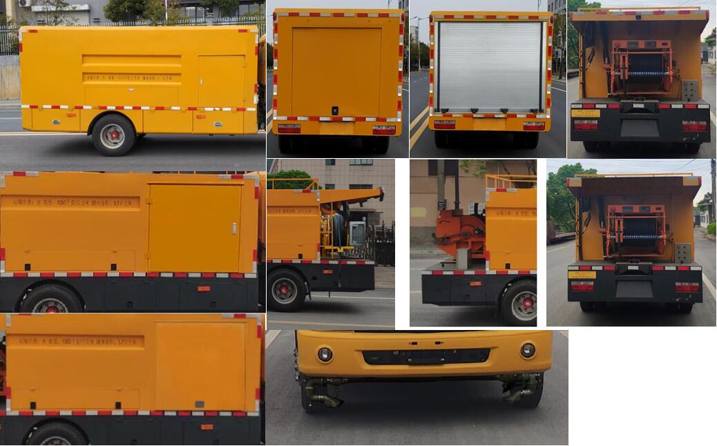 整车配置有专门驱动高压水泵的副发动机,最大工作压力可达到30MPA,驾驶室前安装有冲路装置为7个喷头,流量为11.7L/min ,单次做业时间3小时左右 ,一个单点喷射枪,工作高效,性能稳定,毫无后顾之忧。