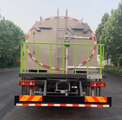 该车选用4350+1350(mm)轴距;用途;清洗路面;专用装置;高压水泵,齿轮水泵,气缸,阀门,控制开关;罐体尺寸(mm)罐体长×长轴×短轴:5090×2300×1650;介质;水,密度:1000(千克/立方米);罐体有效容积:13.44立方米;侧防护和后防护装置的材料材质为Q235,侧防护装置采用螺栓连接;后下部防护装置与车架采用螺栓连接,后防护装置的断面尺寸为250×50mm,后防护离地高度为490mm;装ABS,ABS型号/生成厂家:3631010-C2000/东科克诺尔商用车制动系统(十堰)有限公司. |