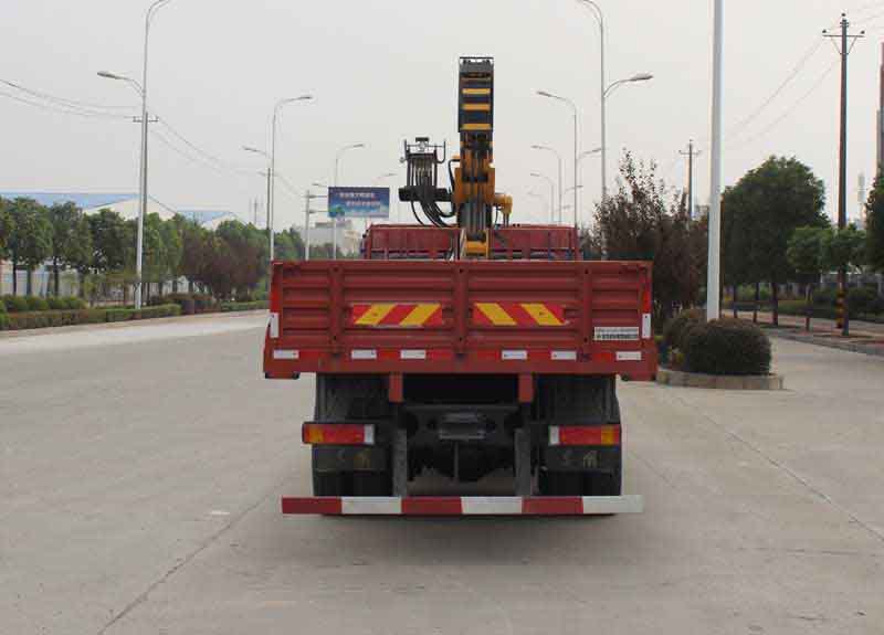 东风牌东风后双桥10吨直臂式随车起重运输车选用EQ1250GLJ的底盘,装有10个11.00-20 18PR,11.00R20 18PR规格的轮胎,排放标准达到国五,整车选用广西玉柴机器股份有限公司