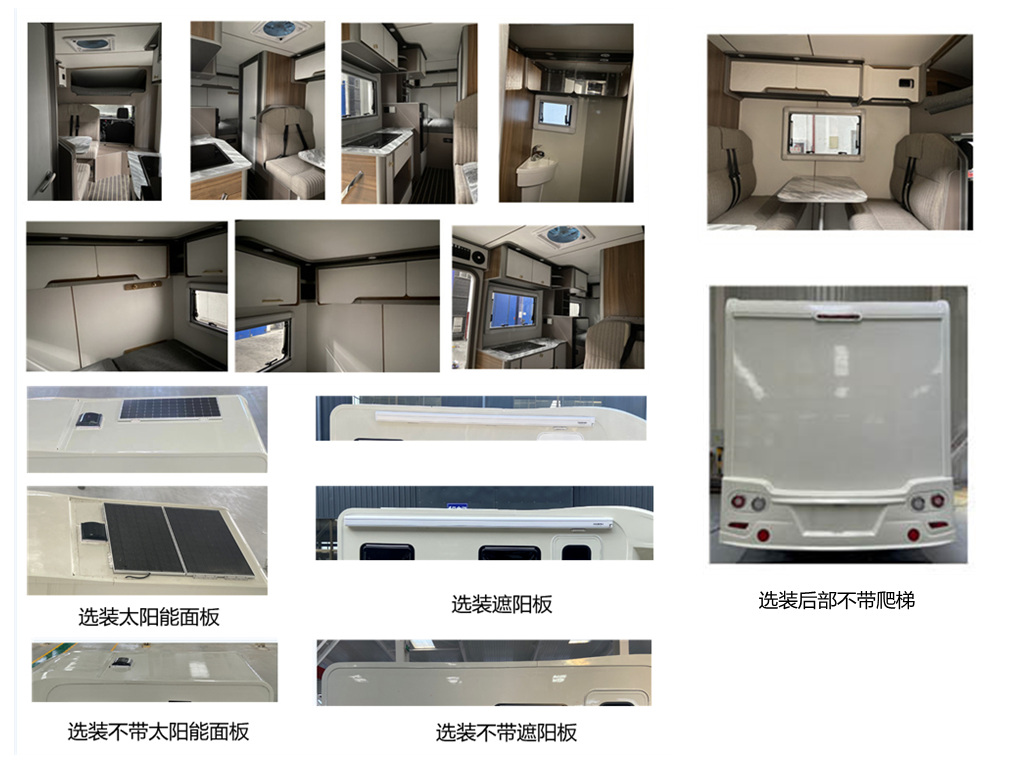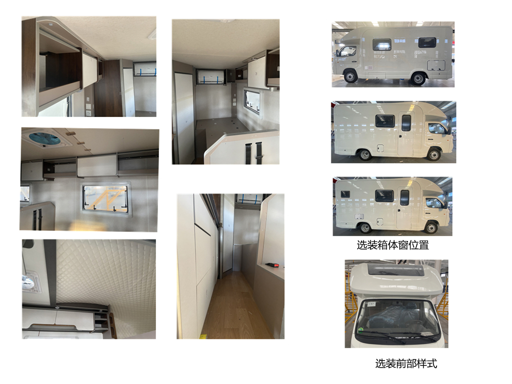 该车装配睡具,炊具,卫生设施等设备,用于旅行宿营。后部选装爬梯,顶部选装太阳能电板,选装箱体窗位置,选装遮阳板,选装前部样式,随底盘选装带前雾灯及昼间行驶灯造型,选装不带前雾灯及昼间行驶灯造型,可选装黑色装饰条,可选装不带黑色装饰条;仅使用3200轴距。ABS系统控制方式是双参数控制,ABS系统控制器型号是YF9,ABS系统控制器生产企业是武汉元丰汽车电控系统有限公司。该车选装ETC 车载装置。 |