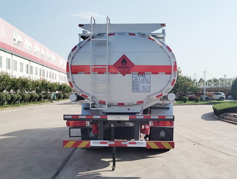 绿叶牌重汽豪沃后双桥国六20.5方运油车在外观上稳重大气,整车外形尺寸为9840×2500×3280(mm),可根据需求独立分仓,分装不同的油品。罐体采用金属板材制作,也可以用玻璃钢,塑料等材料制作。罐体采用大型包罐机一次成形,龙门自动焊,罐内设多道防波隔板,完全按国家标准检测,罐体具有强度高、重心稳,整车采用空气悬架,运行安全,平稳的特点。结构紧凑,工艺美观,联接牢靠,质量稳定,性能优越,导电性好,耐腐蚀强。罐体底部还安装有海底阀,安全环保。此款运油车发动机排气管为前置式结构,符合国标上的硬性规定,在使用过程中应配备防火帽,以防发生意外。