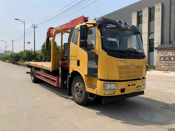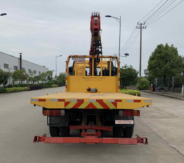 这款车的外形尺寸为9000,10100×2550×3800,3850,3700(mm),整车的总质量为18000(kg),整备质量为11005,11555(kg),不仅结构简单,外形大气,而且每个部位的零部件都是经过精心设计而来的,车辆起重机作为清障车的重要组成部分,在车辆被托起的过程中起着重要作用,具有结构简单、有缓冲吸振能力、操纵灵敏快捷等诸多优点。