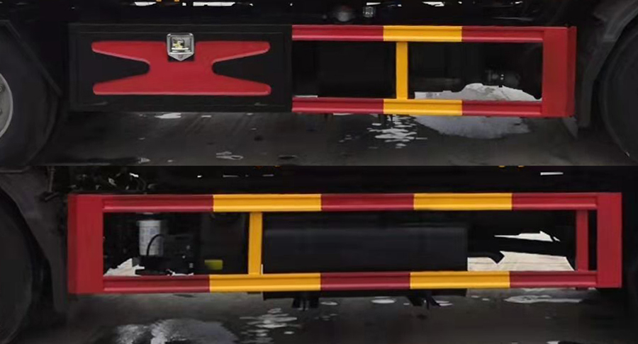 托举质量500千克.该车主要用于道路故障车辆,城市违章车辆清理,主要专用装置为托举平板.选装伸缩板结构,选装后部支撑板结构样式,选装后部安装托板结构,选装全落地式结构.侧、后防护材料采用Q235B,与车架焊接连接.后防护截面尺寸(宽×高) (mm):50×100,离地高380mm.ABS型号/厂家为VIE ABS-Ⅱ/浙江万安科技股份有限公司.随底盘扩展驾驶室.随底盘选装左侧或者右侧安装尿素罐. |