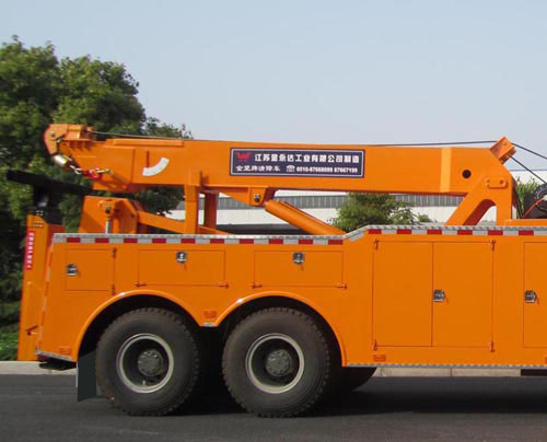 托举质量: 10010kg; 选装D10.28-50发动机时,净功率为204kW,选装D10.31-50和D10.34-50发动机时,净功率为226kW和247kW,选装D10.38-50发动机时,净功率为274kW; 轴距仅选用1800+4600+1350(mm);ABS系统型号为4460046300,生产企业为威伯科汽车控制系统(中国)有限公司;该车选装吊托分离型时,不影响整车的性能和外形尺寸;车身为裙板结构,车身下边缘离地高度为400mm,后部是清障车专用装置替代后防护,离地高度380mm。该车专用装置主要由吊臂,托臂,绞盘,及液压控制装置等组成,并能安全,无损伤地清理,装运故障,事故,违章的车辆。 |