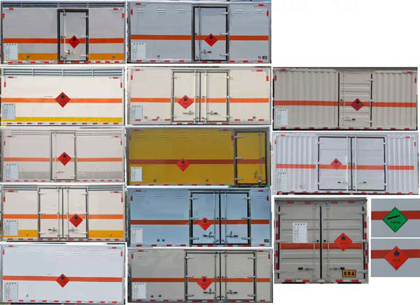 厢体顶部封闭,不可开启;选装右侧箱体不开门,选装侧门型式及位置,选装后部三合页样式;选装不带导流罩.选装镜子的不同安装位置.选装带通气结构的货箱.仅采用前轮盘式制动器,前置排气管,子午线轮胎,静电带,限速装置的底盘,限速79km/h;转向轮安装爆胎应急防护装置;发动机/油耗申报值(L/100km)对应关系为: 11.2对应发动机CA4DB1-11E6;侧防护Q235,焊接连接;后防护Q235,焊接连接,后下部防护装置断面尺寸(宽×高):50×120(mm),离地高度:390mm;车辆长度/轴距/前悬/后悬对应关系为:5295/2600/1155/1540.该车为危险品运输车.运输独立容器(瓶)包装的货物;危险货物类项号:2.1,2.2;其他说明:运输易燃气体时挂2.1类警示牌,运输非易燃无毒气体时挂2.2类警示牌.ABS生产厂家/型号:浙江万安科技股份有限公司/VIE ABS-II.转向轮安装爆胎应急防护装置.该车型可选装ETC车载装置.安装具有卫星定位功能的行驶记录仪. |