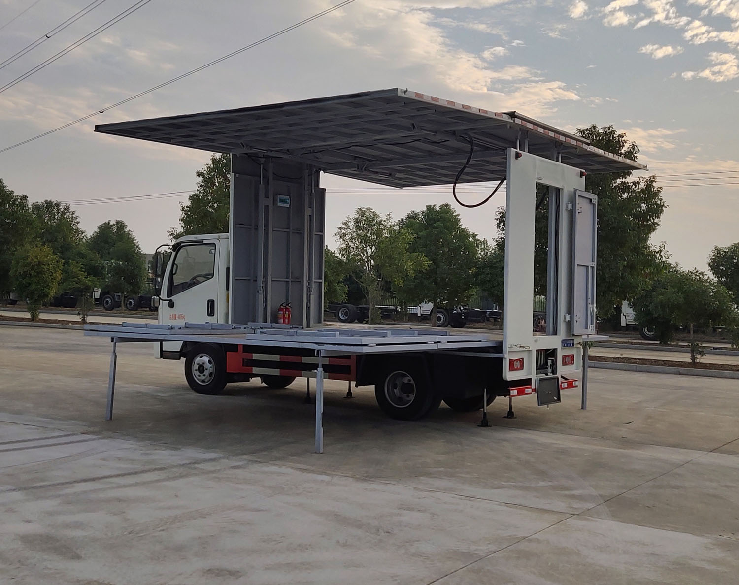 程力牌福田时代国六蓝牌舞台车外形尺寸为5995×2180×3080,3200(mm),上户吨位为(kg),总质量为4495(kg),驾驶室准乘人数为3人,整个舞台车的举升、展开、收拢都是由液压系统来操作完成,采用液压控制技术,升降轻松,搭台简便,省时省力,经济环保,安全无故障。