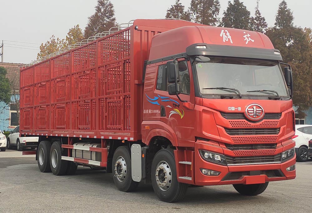 畜禽运输车又被叫做运猪车、拉猪车、鸡苗运输车,是一种主要用来运输活禽类的专用车型,有仓栅式和厢式两种结构形式,前一种结构比较简单,适合短途运输,而后一种配置上比较高端,适合活禽的长途运输,能够最大程度的保证活禽成活率,提高运输效率,那接下来就给大家介绍一款优质的畜禽车,即解放牌解放前四后八国六仓栅式畜禽运输车畜禽运输车,这款畜禽运输车有着怎样的配置呢?