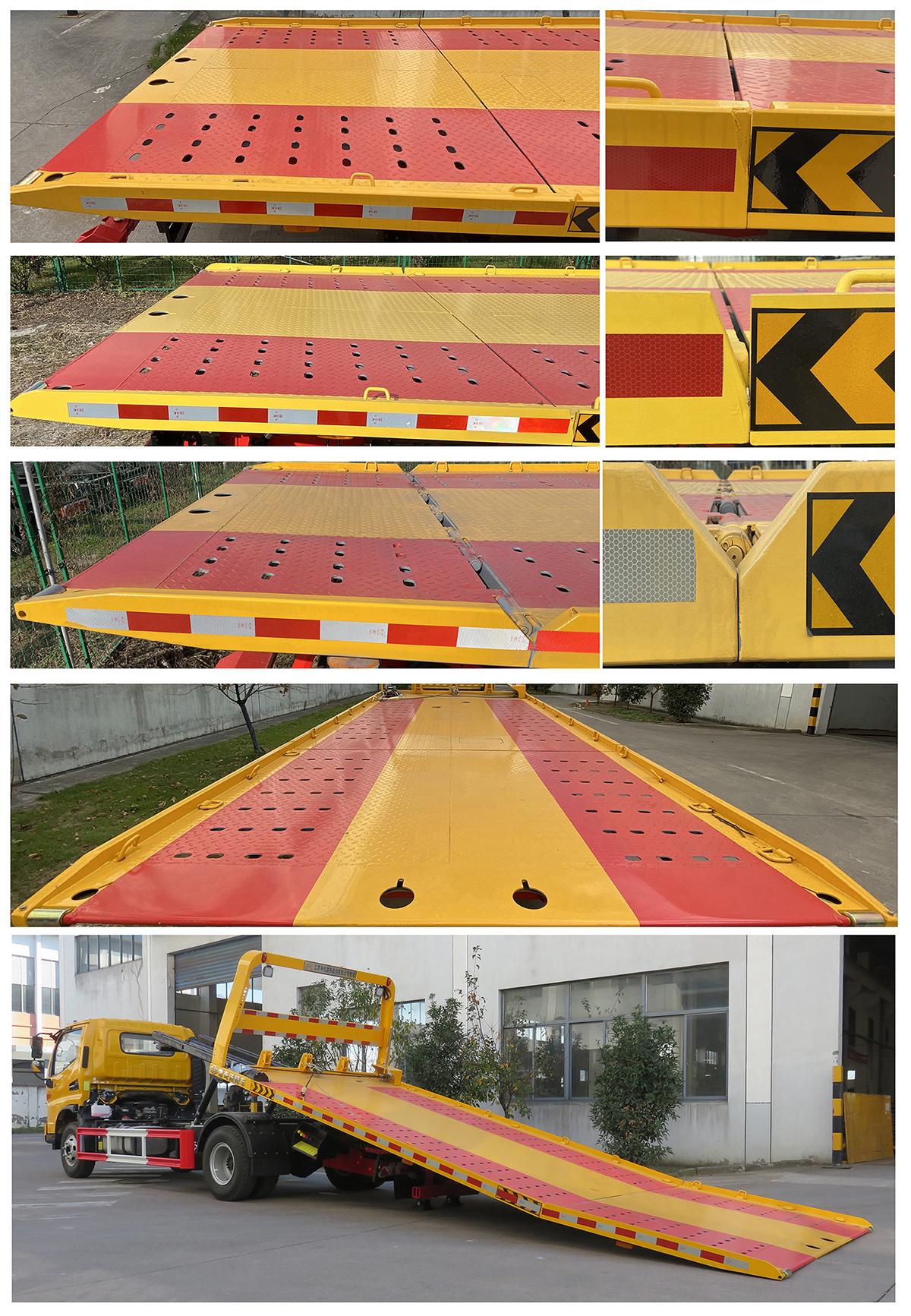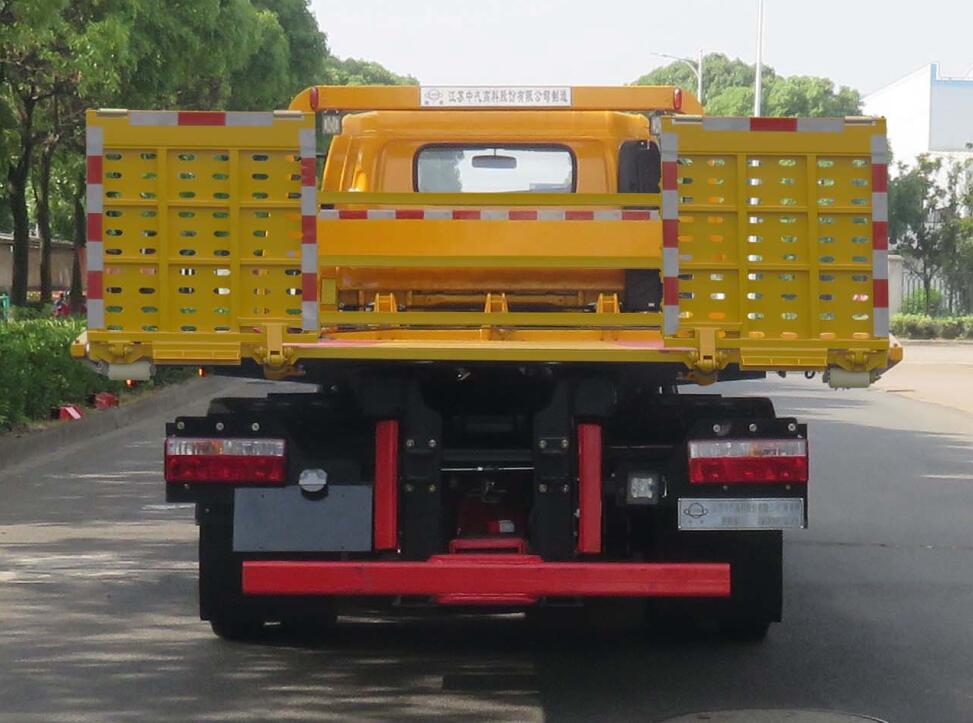 托举质量2695kg。该车选装上坡辅助液压尾板结构时仅外观变化,对应的整备质量无变化(上坡辅助液压尾板收起状态的水平长度为150mm);选装加强型结构时外观不变,对应的整备质量为6830kg,托举质量为2375kg;选装轻量化上装结构时对应的整备质量为5920kg,托举质量为3285kg。侧防护与底盘纵梁间采用螺栓联接,材质为Q235A;后部是清障车专用托举装置替代后防护, 离地高度460mm;ABS系统控制器型号:CM4XL-4S/4M,ABS系统控制器生产厂家:广州瑞立科密汽车电子股份有限公司,选装ABS系统型号/厂家为VIE ABS Ⅱ/浙江万安科技股份有限公司;该车随底盘选装改前围面板进气格栅,前组合灯具,保险杠的驾驶室;随底盘选装后组合尾灯;该车仅用4200mm轴距;该车选装宽度2490mm。专用功能及装置:该车用途为道路故障车辆、城市违章车辆托运;主要专用装置有平板机构,绞盘及托臂机构;该车型可选装ETC车载装置。该车可选装折叠口样式不同的平板。 |