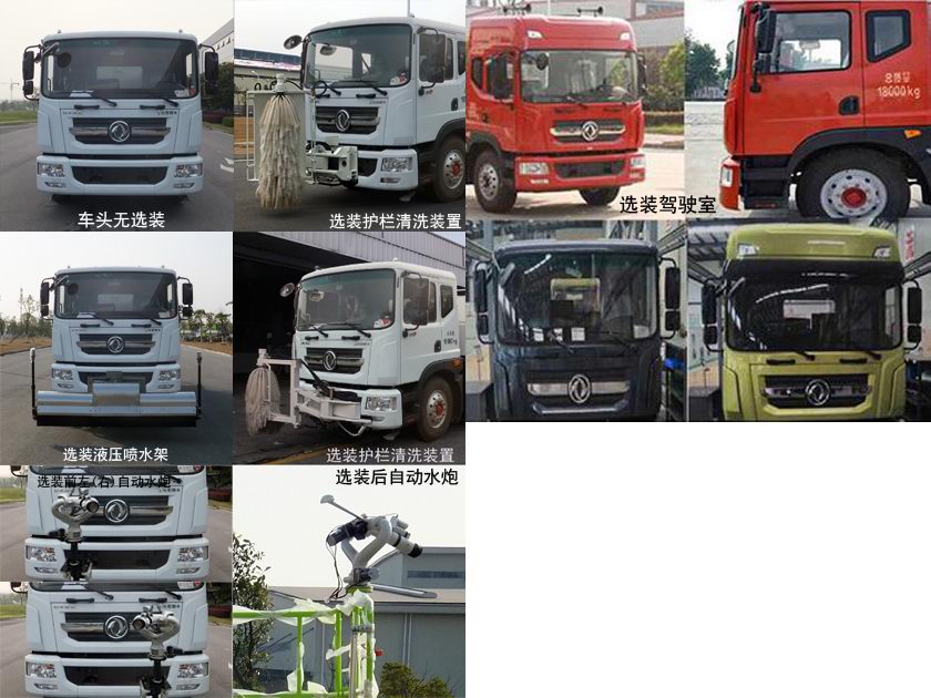 该车选用4500mm底盘轴距;该车装有水罐、水路系统、清洗工作装置、作业平台、控制系统,用于清洗作业;罐体外形尺寸(长轴×短轴×长度)(mm):2400×1420×4270.该车罐体总容量10.1立方米,罐体有效容积9.7立方米;该车型工作装置有4种配置:A(车头无选装)、B(装液压喷水架)、C(装气控喷水架)、D(装护栏清洗装置);配置A时,整车长7895mm,接近角为12°;配置B时,整车长8820mm,前伸925mm,接近角为10°;配置C时,整车长8775mm,前伸880mm,接近角为10°;配置D时,整车长8755mm,前伸860mm,接近角为12°.侧面防护装置材料为铝合金,连接方式为螺栓连接,可选装其局部外观,后防护装置材料为Q345A,与车辆连接方式为螺栓连接;后部防护装置的断面尺寸为240×65mm,离地高度为425mm;该车可选装前左(右)自动水炮、后自动水炮、鸭嘴、对冲、后部洒水架保洁型、后部洒水架浇灌型、卷盘、左(右)绿化浇灌、后作业箭头灯、上下喷雾、上绿化浇灌、小型喷洒系统、自吸,该系列选装对于整车尺寸、重量变化可忽略不计.随底盘选装驾驶室外观,随底盘装有ABS,ABS系统生产厂家,型号 :焦作博瑞克控制技术有限公司,J ABS. |