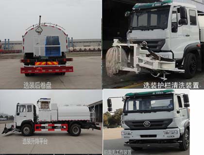 1.罐体有效容积8.7立方米,罐体外形尺寸(长度×长轴×短轴)(mm):3200×2480×1580; 2.该车可选装工作装置有6种配置:A(装喷水架)、B(装喷水架和升降平台)、C(装护栏清洗)、D(装护栏清洗和升降平台)、E(车前无工作装置)、F(装升降平台),配置A、B时整车外形长9410, 前伸1000,接近角7°;配置C、D时整车外形长9270,前伸860,接近角10°;配置E、F时整车外形长8410;选装后卷盘; 3.侧面防护装置,材料:Q235,连接方式:螺栓连接;后部防护装置, 材料:Q235,连接方式:焊接,断面尺寸为240×60,离地高度为500; 4.随底盘带ABS,ABS型号: 4460046300,生产企业为威伯科汽车控制系统(中国)有限公司. |