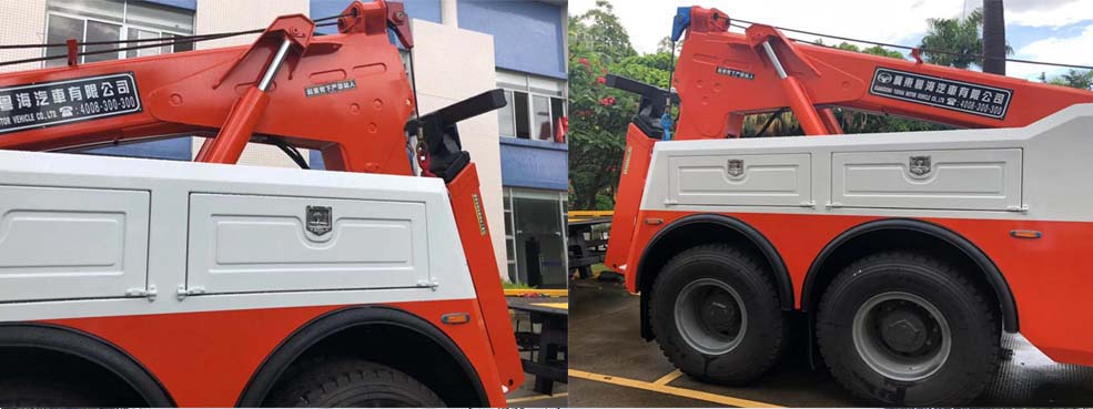 粤海牌重汽豪沃前四后八国六拖吊联体清障车选用此款底盘是因为看中了其自身优势所在。与此同时,优质的组装手法使车辆更加的结实可靠,承载能力也有相当高的保障,另外底盘以及驾驶室构造美观大气,视觉上更有层次感,下面我们就来简单的了解一下这款车。