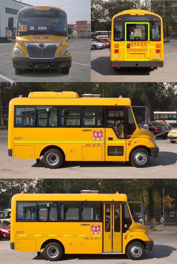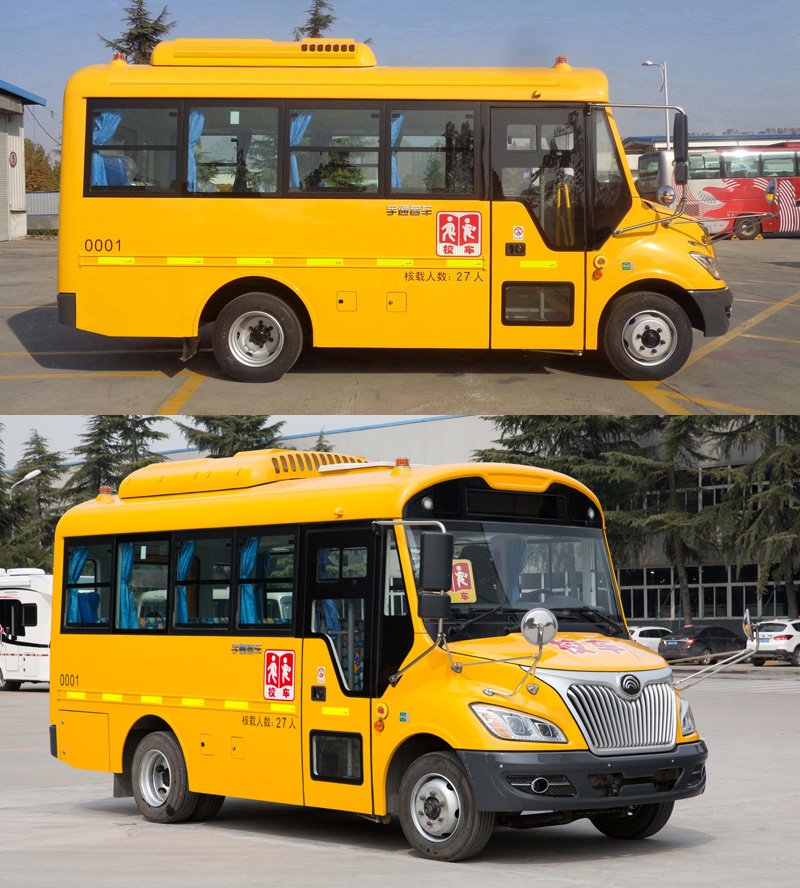 整车可以容纳24-27人,座椅宽度大小根据一般小学生的身高量身定制,全包软化防火阴燃材质的座椅,舒适安全且每个座椅上都配置有两点式安全带,为乘坐安全护航,走廊空间恰到好处,成人走在中间也来去自如。另外车辆的总质量为6800(kg),整备质量为5200,5400(kg),外形尺寸为5945×2270×2895,2935,3060,2850(mm),轴距为3300(mm)。