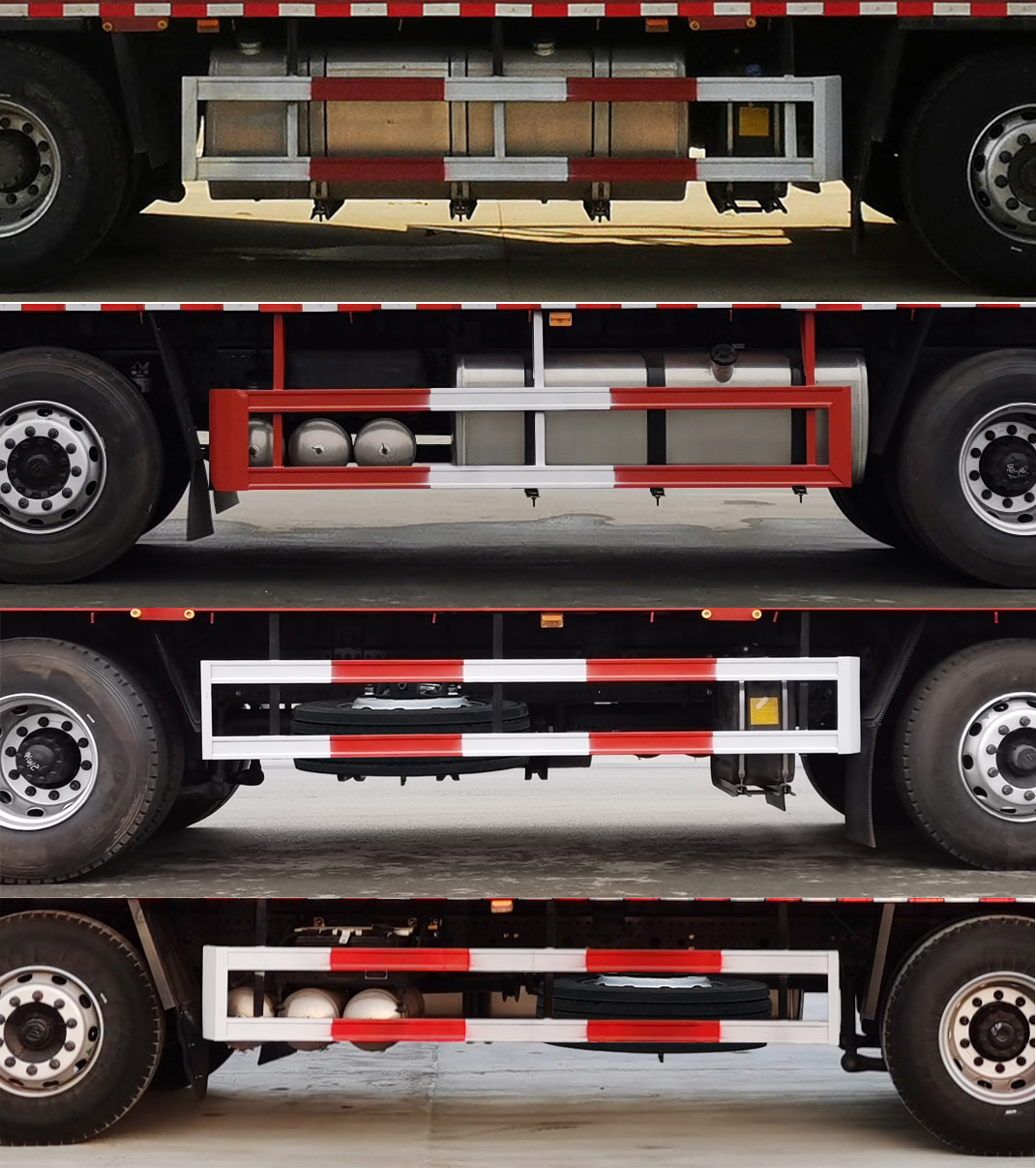选装平顶驾驶室,选装前围装饰件及前部灯具,选装后组合灯,高顶驾驶室选装超大保险杠.选装导流罩,选装驻车空调,选装备胎位置,选装不同型式后处理,选装不同结构货箱,选装不同容量燃油箱.货箱底板到仓栅顶部高度为2500mm、2600mm、2650mm、2700mm.侧防护装置材料:Q235A;后防护装置材料:510L;后防护装置断面尺寸:120×50mm,后防护离地高度:500mm;侧防护装置连接方式:焊接和螺栓连接,后防护装置连接方式:螺栓连接.发动机X13NS6B580、X13NS6B560、X13NS6B520油耗申报值为38.3(L/100km).ABS型号/生产企业:ABS-E/采埃孚商用车系统(青岛)有限公司,ABS/ASR-24V-4S/4M/东科克诺尔商用车制动系统(十堰)有限公司,CM4XL-4S/4M/广州瑞立科密汽车电子股份有限公司.选装限速装置,限速89km/h.最高车速为110(km/h)时,配装电子制动系统(EBS)、盘式制动器,EBS型号/生产企业:0 486 106 XXX/克诺尔商用车系统企业管理(上海)有限公司.该车型可选装ETC车载装置.安装具有卫星定位功能的行驶记录仪. |